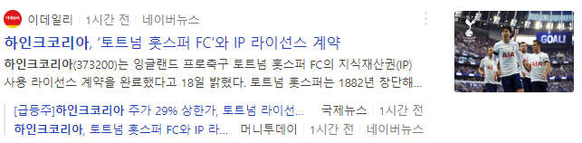 [특징주] 토트넘 홋스퍼 FCㆍ더벤티와 업무 계약 체결, 하인크코리아 상한가 - 머니픽뉴스