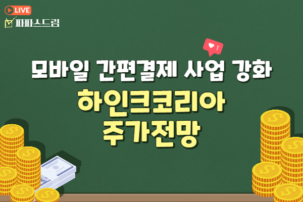 오늘은 모바일 간편결제 사업 강화라는 이슈로 상한가를 기록한 하인크코리의 주가는 앞으로 어떻게 움직일 지 알아보도록 하겠습니다.
