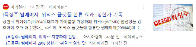최근 위메이드에서 만든 위믹스 플랫폼 이슈로 위메이드 관련주가 상승했습니다.