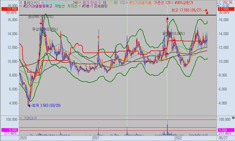 플레이위드는 개별 이슈로 상승하였고 호재도 그리 큰 호재가 아닙니다. 세력의 마지막 물량정리가 될 수 있으니 현재 시장을 주도하는 테마 또는 업종 위주로 투자할 종목을 선정해보시길 바랍니다.