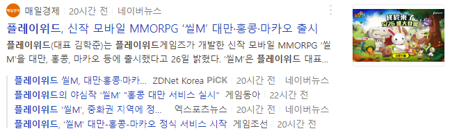 플레이위드는 신작 모바일 MMORPG 게임인 '씰M'이 대만과 홍콩, 마카오에 출시된 이후 흥행중에 있다는 소식으로 오늘 장시작과 함께 점상한가를 기록했습니다.