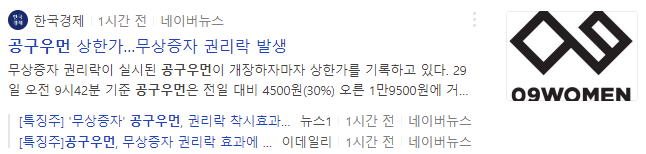무상증자 권리락 이슈로 점상한가를 기록한 공구우먼의 주가는 앞으로 어떻게 움직일 지 알아보도록 하겠습니다.
