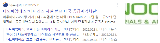 반등시 나온 이슈는 나노씨엠에스에서 개발한 바이러스 사멸램프가 미국 기업과 공급계약을 체결했다는 것입니다.