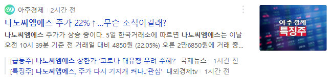 오늘은 코로나19 재확산 이슈로 상한가를 기록한 나노씨엠에스의 주가는 앞으로 어떻게 움직일 지 알아보도록 하겠습니다.