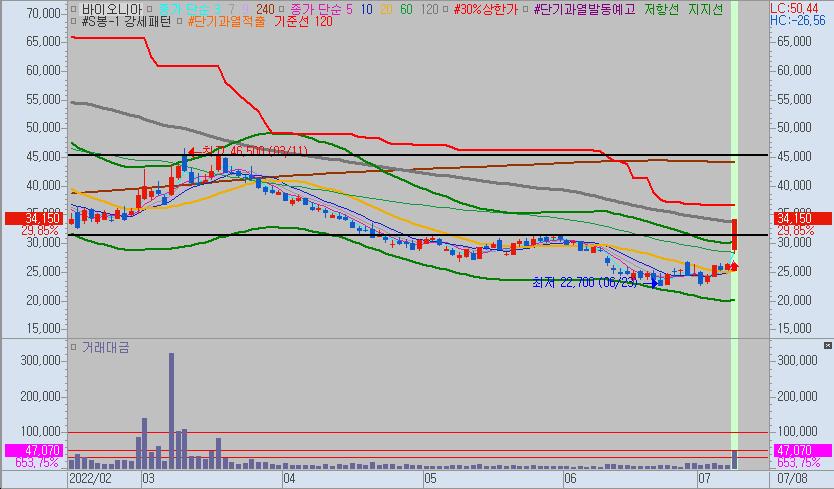 개인적인 의견으로는 바이오니아의 이번 상승은 45000원 부근에서 마무리되지 않을까 생각됩니다.