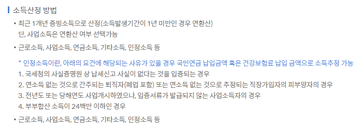 최근 1개월 증빙소득으로 산정하며, 사업소득은 연환산 여부를 선택하여 증빙할 수 있습니다.