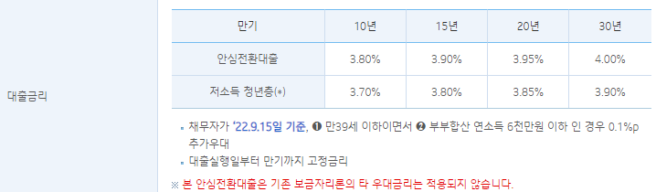 기업은행 안심전환대출의 금리는 대출상환기간에 따라 달라지게 됩니다.