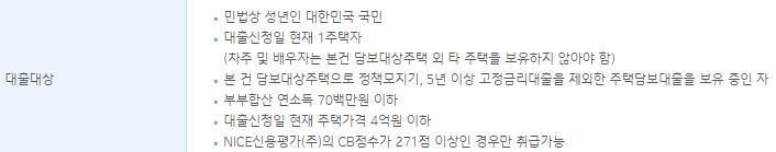 - NICE신용평가의 CB점수가 271점 이상인 경우만 취급가능