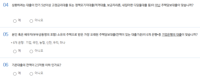 위의 조건을 충족하면 기업은행 안심전환대출을 이용할 수 있으니 참고하시길 바랍니다.