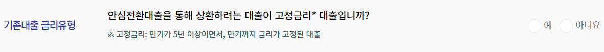 안심전환대출은 기존 주택담보대출이 고정금리일 경우 신청할 수 없고 변동금리일 경우에만 신청이 가능합니다.