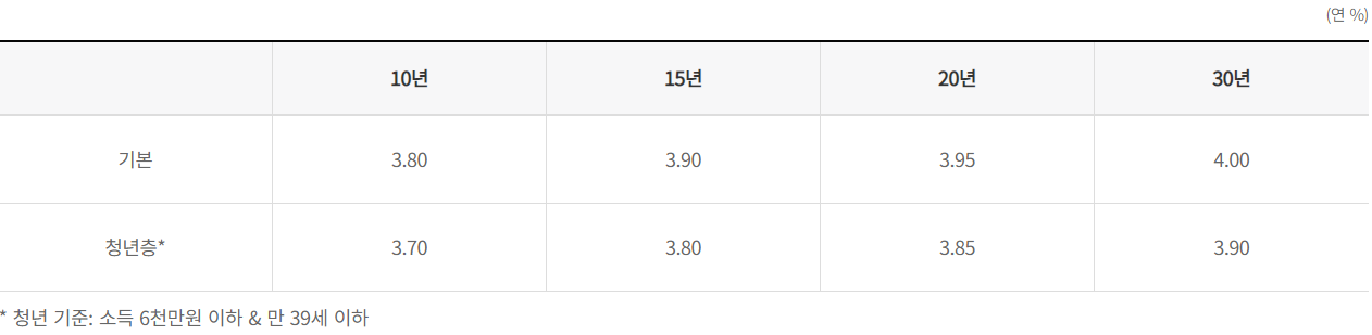 안심전환대출의 금리는 상환기간에 따라 달라지게 됩니다.
