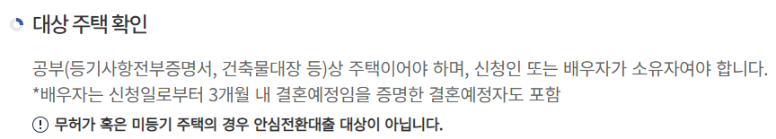 무허가 또는 미등기 주택의 경우에는 안심전환대출 대상이 아니니 유의하시길 바랍니다.