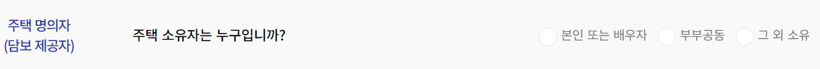 안심전환대출은 주택의 소유자가 본인 또는 부부공동인 경우 신청이 가능하며 그외 소유인 경우 신청이 불가합니다.