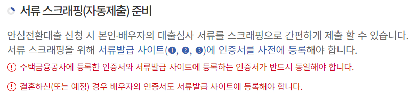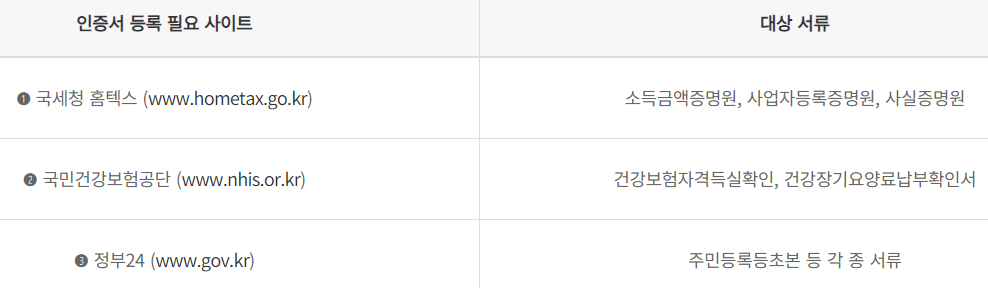 위의 서류들은 스크래핑의 방식으로 제출되기 때문에 스크래핑 방식으로 서류를 제출할 수 있게 본인 및 배우자는 위의 사이트에 회원가입하고 공동인증서를 등록해야 합니다.