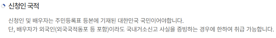 안심전환대출 신청인 뿐만 아니라 배우자 모두 대한민국 국민 또는 국내거소사실 증명서 발급이 가능해야 신청이 가능합니다.