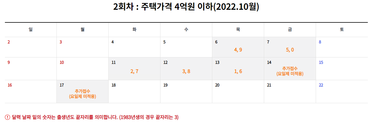 주택가격이 4억원 이하인 경우 10월 6일부터 출생년도에 따라 순차적으로 신청할 수 있으니 이용에 참고하시길 바랍니다.