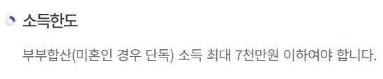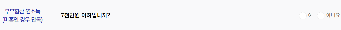 미혼인 단독 세대주의 경우에도 동일하게 연소득 7천만원 이하면 신청할 수 있습니다.