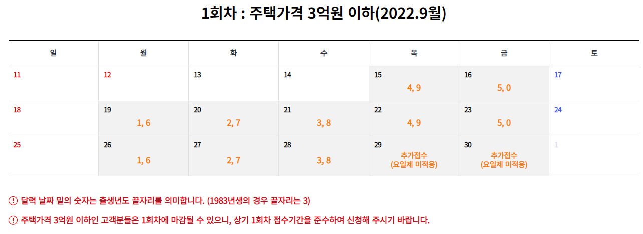 주택가격이 3억원 이하인 경우 9월 15일부터 출생년도에 따라 순차적으로 신청할 수 있습니다.