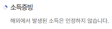 단, 해외에서 발생된 소득은 인정하지 않으며, 해외에서 입금된 소득이고 하더라도 한국 국세청에 정식으로 신고된 소득은 인정받을 수 있습니다.
