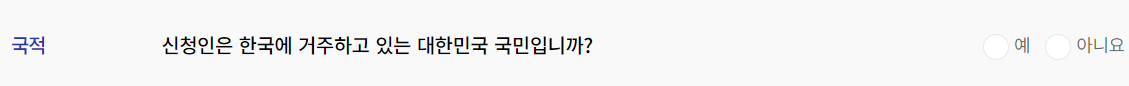 대한민국 국민이 아닌 경우 신청이 불가합니다.