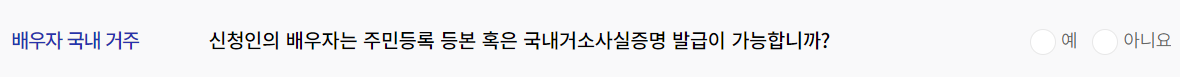 배우자는 신청일로부터 3개월 내 결혼 예정임을 증명한 결혼예정자도 포함됩니다.