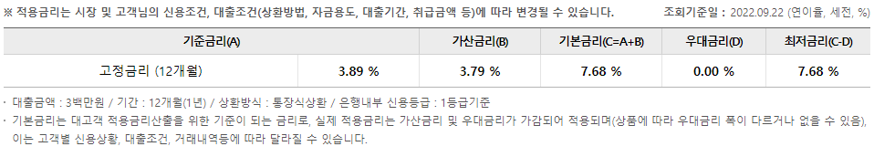 연간 7.68%의 금리가 적용될 수 있지만 신청시기 및 대출조건에 따라 실제 금리는 달라질 수 있으니 유의하시길 바랍니다.