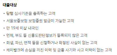 - 연체 및 부도 등 신용도 판단정보가 등록되지 않은 분