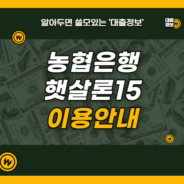 이번 시간에는 농협은행 햇살론15의 신청자격 및 대출한도, 대출금리 등에 대해 알려드리겠습니다.