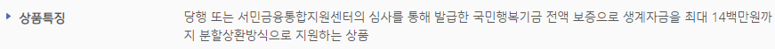 기업은행 햇살론15는 기업은행 또는 서민금융통합지원센터의 심사를 통해 발급한 국민행복기금 전액 보증으로 생계자금을 최대 1400만원까지 분할상환 방식으로 지원하는 서민금융상품입니다.
