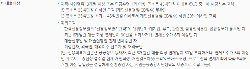 - 연소득 3500만원 이하 또는 연소득 4500만원 이하이면서 개인신용평점이 하위 20%에 해당하는 분