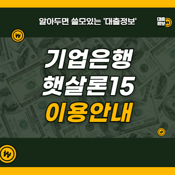 이번 시간에는 기업은행 햇살론15의 신청자격 및 대출조건, 필요서류 등에 대해 알려드리겠습니다.
