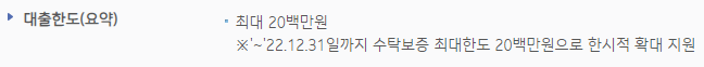 2022년 12월 31일까지는 일반보증으로 진행하여도 최대한도를 2000만원으로 증액하여 이용할 수 있으니 이용에 참고하시길 바랍니다.