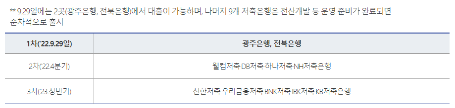 현재 최저신용자 특례보증 대출의 협약은행은 광주은행과 전북은행으로 나오는데 순차적으로 저축은행이 추가될 예정이라 하니 이용에 참고하시면 좋겠습니다.