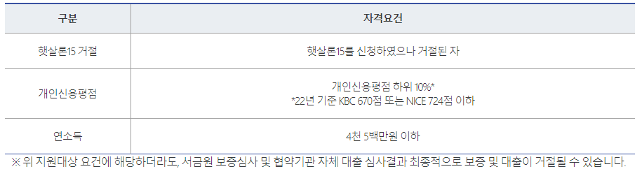 - 햇살론15를 신청하였으나 거절된 분