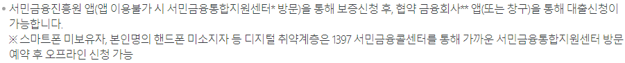 스마트폰이 없거나 본인명의 핸드폰을 소지하고 있지 않은 경우 서민금융통합지원센터에 방문하여 신청하시길 바랍니다.