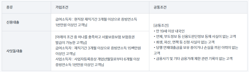 현재 다니고 있는 직장에 3개월 이상 재직중이면서 증빙연소득이 1천만원 이상인 직장인이 신청할 수 있습니다.