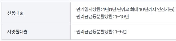 - 원리금균등분할상환 : 1~5년, 1년 단위로 대출기간을 신청인이 설정 가능