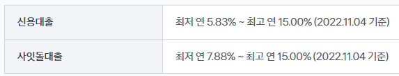 - 토스뱅크 사잇돌대출 금리 : 연 7.88%~ 연15.00%
