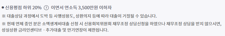 신용평점이 하위 20% 이하이면서 연소득이 3500만원 이하인 경우 신청이 가능합니다.