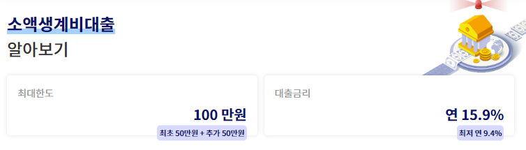 소액생계비대출의 한도는 1인당 최대 100만원까지 책정됩니다.