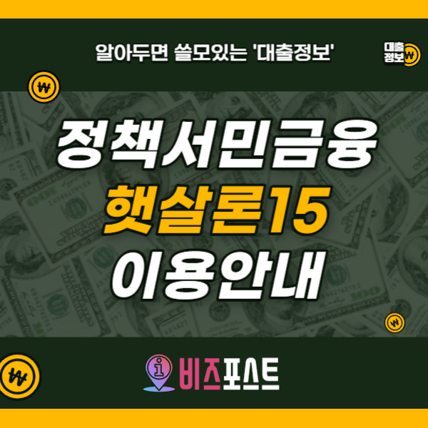 정부지원 서민대출의 대표격인 햇살론15는 대부업 및 불법사금융 등을 어쩔 수 없이 이용할 수 밖에 없는 처지에 놓인 분들을 지원하기 위한 대출상품입니다.