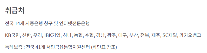 햇살론15는 국민은행, 신한은행, 우리은행, 기업은행, 하나은행, 농협은행, 수협은행, 경남은행, 광주은행, 대구은행, 부산은행, 전북은행, 제주은행, 제일은행, 카카오뱅크 등 전국 14개 시중은행에서 취급하고 있습니다.