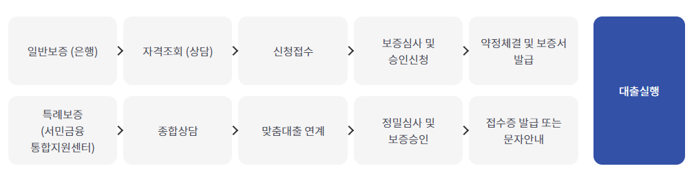 특례보증은 서민금융통합지원센터 앱을 설치해서 보증가능여부를 확인한 이후 비대면으로 보증을 받아 대출을 진행할 수 있습니다.