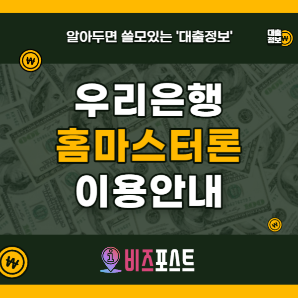 오늘은 우리은행 홈마스터론의 신청자격 및 대출조건에 대해 알아보도록 하겠습니다.