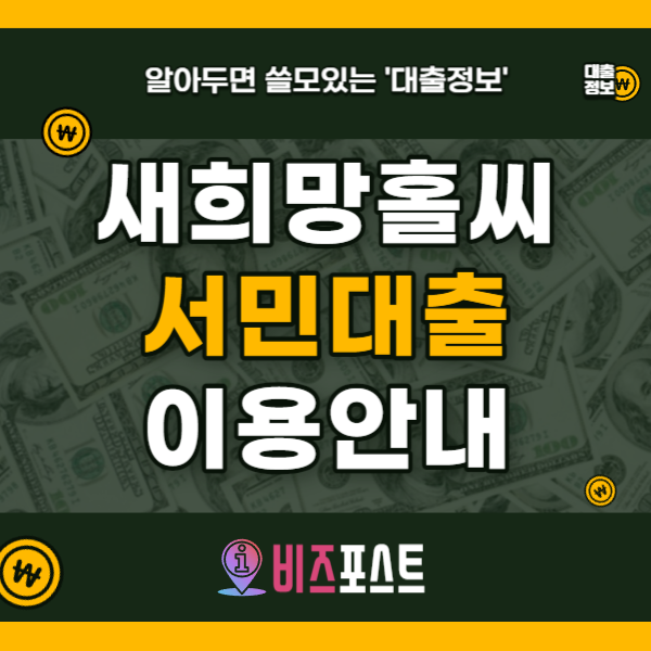 서민금융진흥원에서 운영하는 서민대출인 새희망홀씨는 저소득, 저신용 계층이 이용할 수 있는 서민대출 상품입니다.