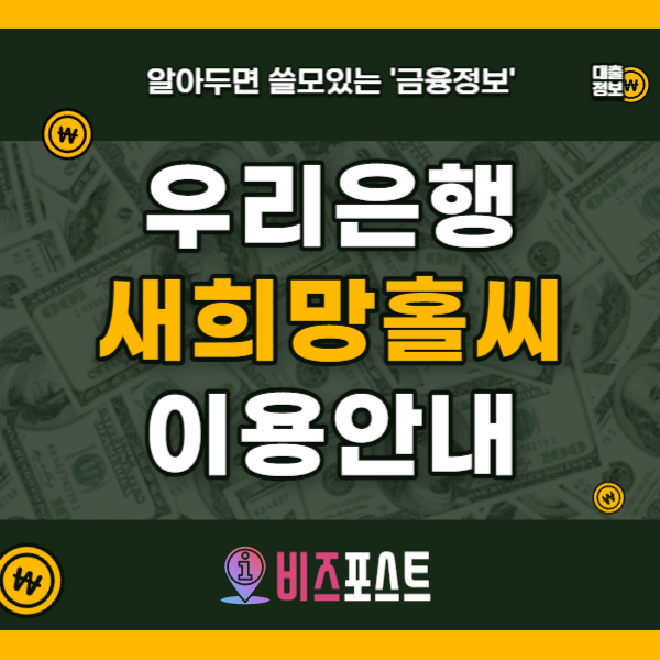 우리은행 새희망홀씨 대출은 서민금융을 위한 서민 전용 정부지원 서민대출 상품입니다.