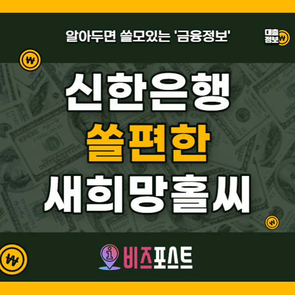 신한은행에서는 소득과 신용기준을 완화하여 보다 많은 직장인분들이 정부지원 서민대출상품을 신청할 수 있도록 쏠편한 새희망홀씨 대출 상품을 취급하고 있습니다.
