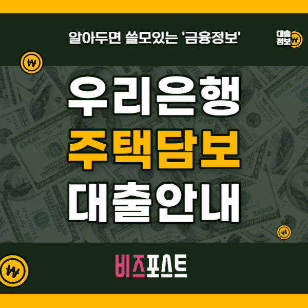 오늘은 우리은행의 주택담보대출 종류와 신청자격, 대출금리, 대출조건등에 대해 알아보도록 하겠습니다.