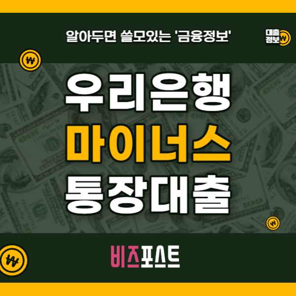 오늘은 우리은행 마이너스 통장대출 조건 및 금리, 필요서류 및 신청자격등에 대해 알아보도록 하겠습니다.